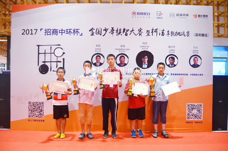 2017年“全國少年棋智大賽”深圳賽區(qū)在招商中環(huán)營銷中心舉行,棋智大賽,今年是第6年舉辦,不同于往屆的是,從全國層層選拔出來的幾個孩子,要和五位傳奇圍棋國手配對,一起生活一起學棋。這五個傳奇國手是誰呢?老一代世界冠軍聶衛(wèi)平、俞斌;中生代“扛把子”常昊、古力;在兩次人機大戰(zhàn)中收割無數(shù)“粉絲”的新晉棋界網(wǎng)紅柯潔——每一位都是響當當?shù)拇罄?。特別是當中最年輕的柯潔,雖然在最近一次人機大戰(zhàn)中輸給了人工智能“阿爾法狗”,但他畢竟是“現(xiàn)役棋力最強人類棋手”。此次大賽以回合積分形式進行,有120名選手報名參加,共分8個回合進行對戰(zhàn),積分最高的幾位選手將前往廣州進行廣東省選拔賽,最終進行全國大賽,勝出者可以和世界圍棋冠軍柯潔進行同盤博弈。